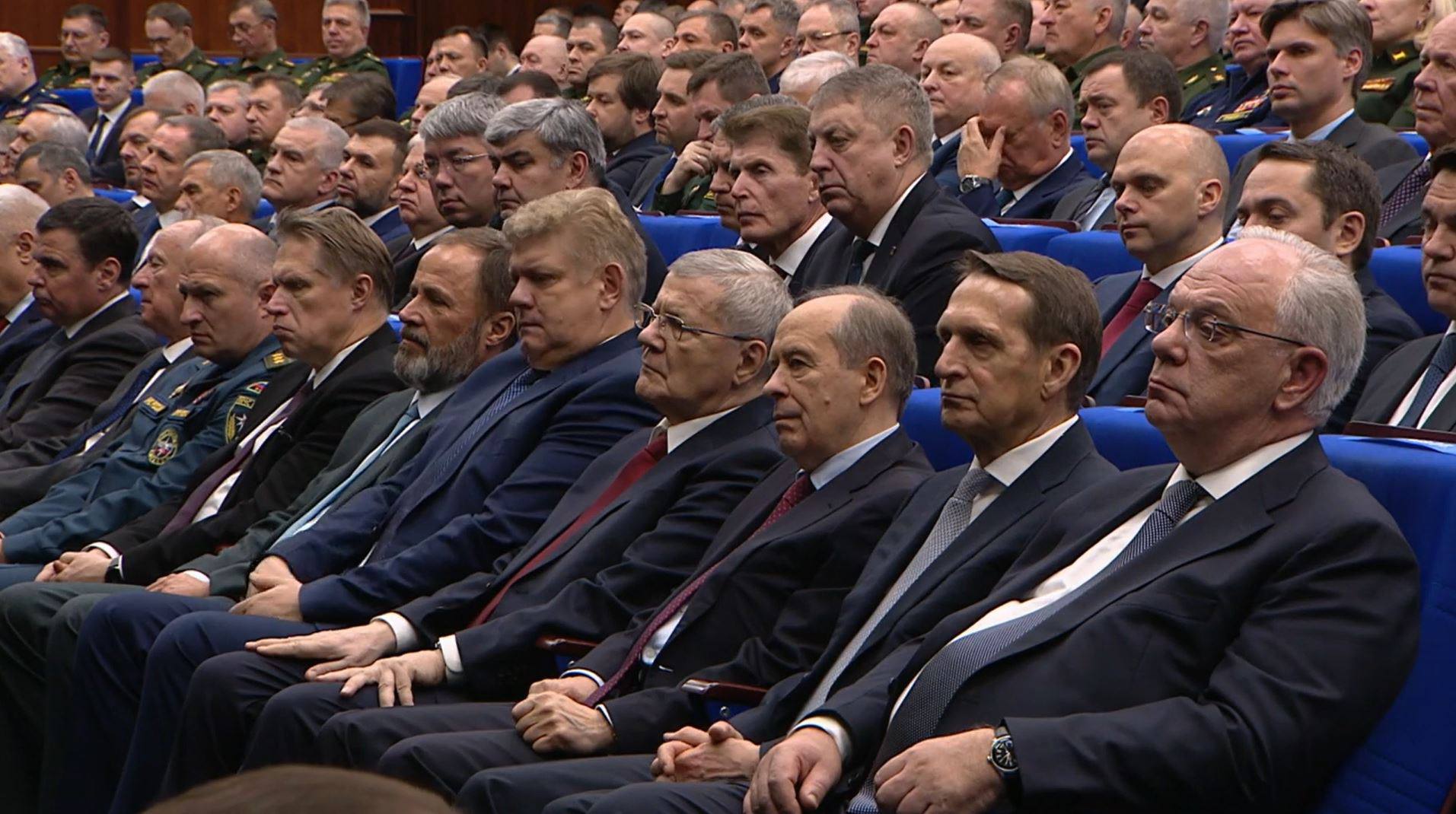 Обращаясь к собравшимся, Владимир Путин отметил, что уходящий год стал важным этапом в решении задач специальной военной операции. Российская армия завоевала и прочно удерживает стратегическую инициативу на всей линии фронта.