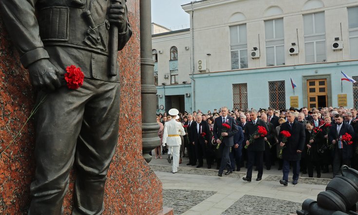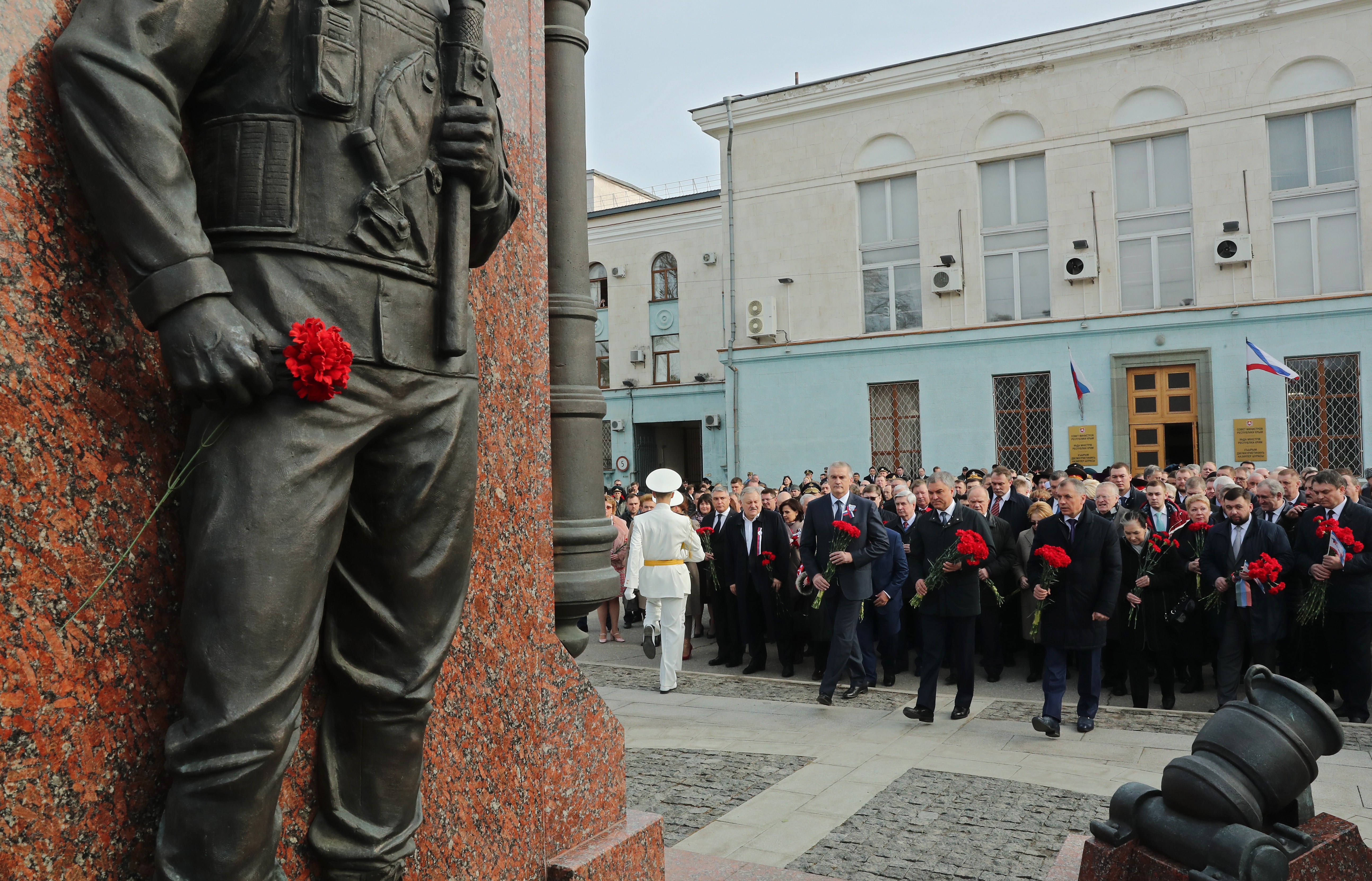 15 марта праздничные мероприятия в столице Республики Крым начались у памятника «Народному ополчению всех времен». Александр Матовников возложил цветы к монументу.