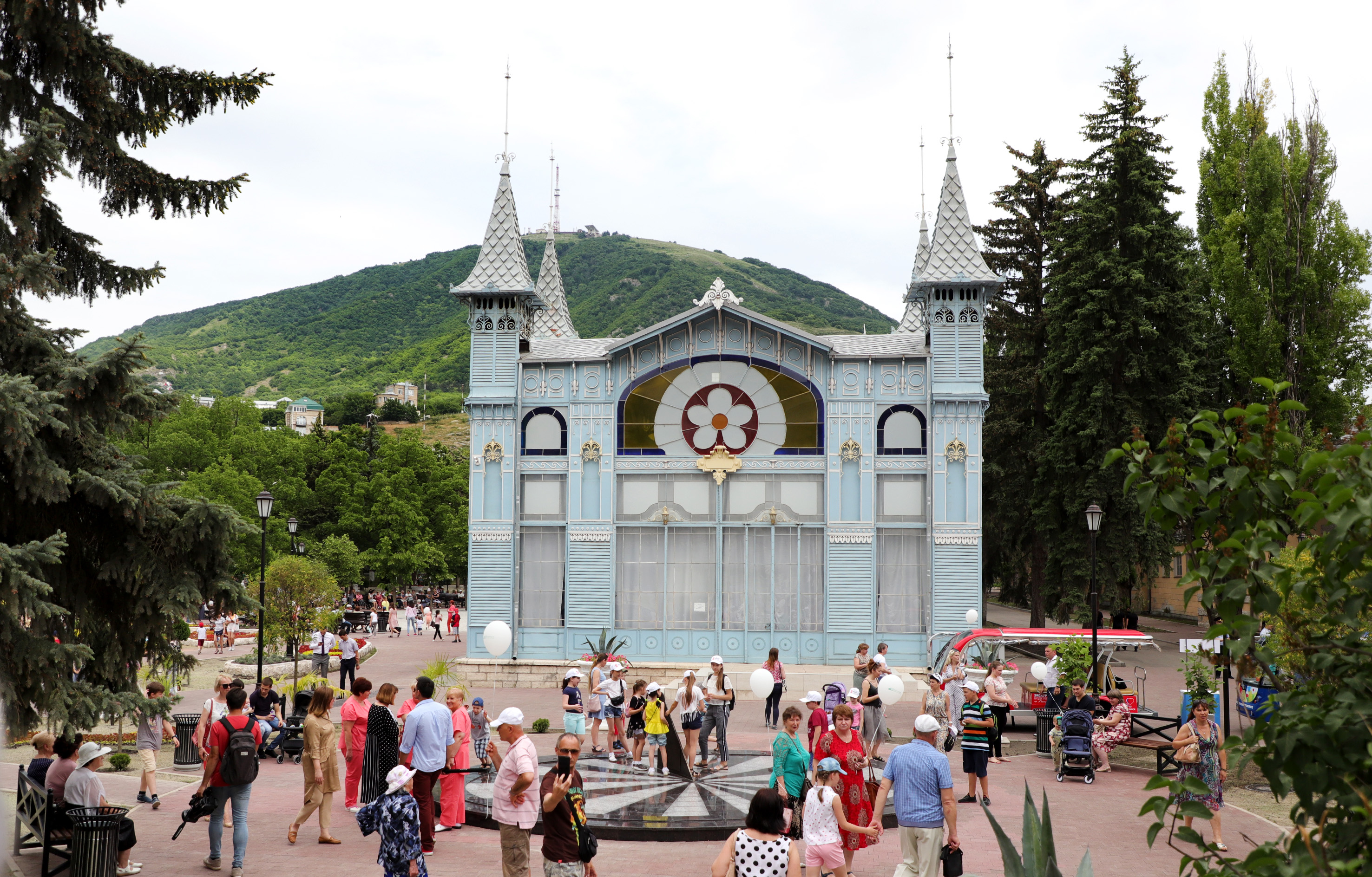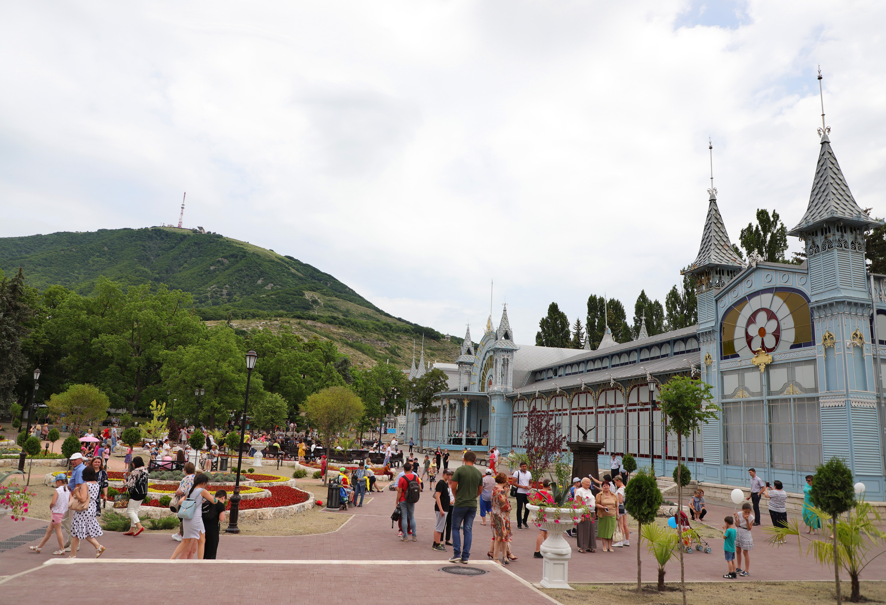 Воссоздание жемчужины Пятигорска происходило по старинным фотографиям. Пространство в историческом центре города преобразилось. На его территории высадили 80 новых деревьев, более 800 кустарников, 168 тысяч цветов, устроили газон площадью 3500 квадратных метров. Растения на многоярусных клумбах, отделанных травертином, подобраны таким образом, что будут радовать глаз отдыхающих и жителей города-курорта с ранней весны до поздней осени.