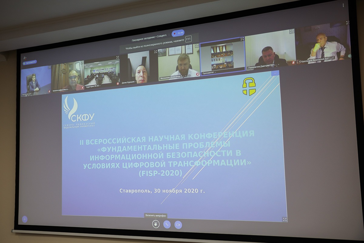 К участникам также обратился ректор СКФУ Дмитрий Беспалов: «Сегодняшняя конференция посвящена актуальным вопросам обеспечения информационной безопасности Российской Федерации, нормативного и учебно-методического обеспечения подготовки кадров для цифровой экономики по специальностям в области защиты информации. В настоящий момент наш университет известен в том числе научными результатами в области информационных технологий. За последние годы учёными СКФУ реализовано ряд крупных исследовательских и инновационных проектов, направленных на развитие цифровой экосистемы в России и СКФО».