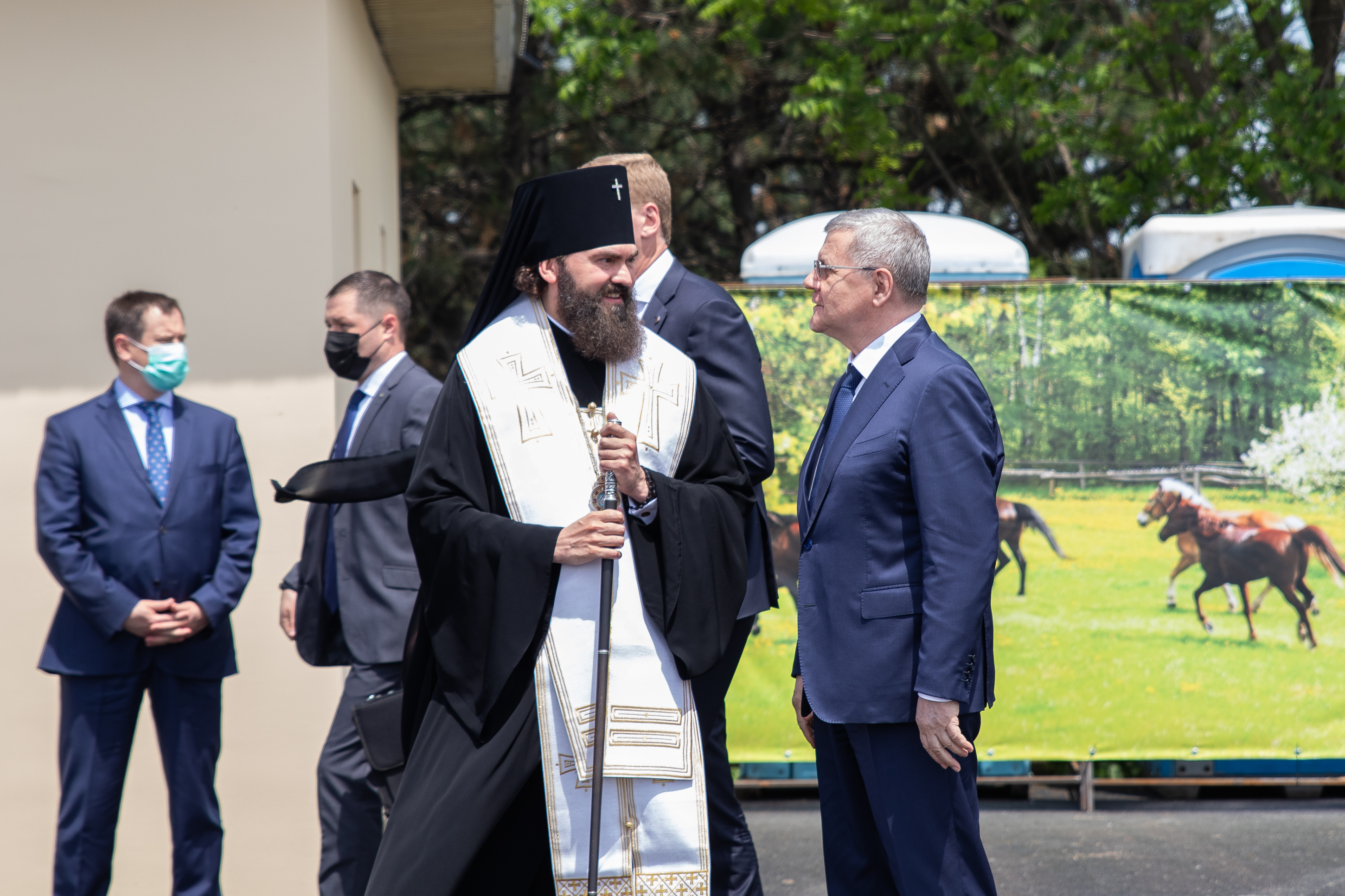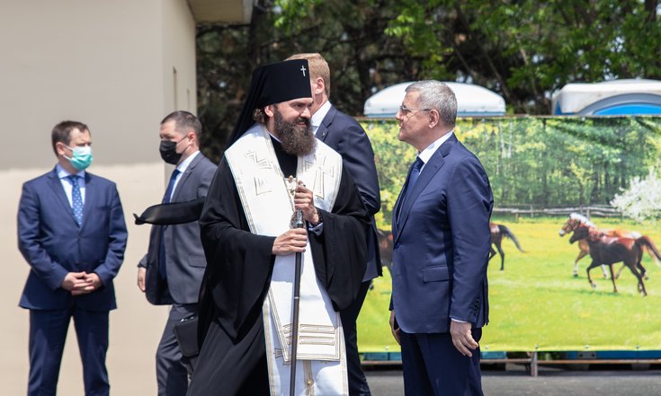 Освятил новый манеж архиепископ Пятигорский и Черкесский Феофилакт.