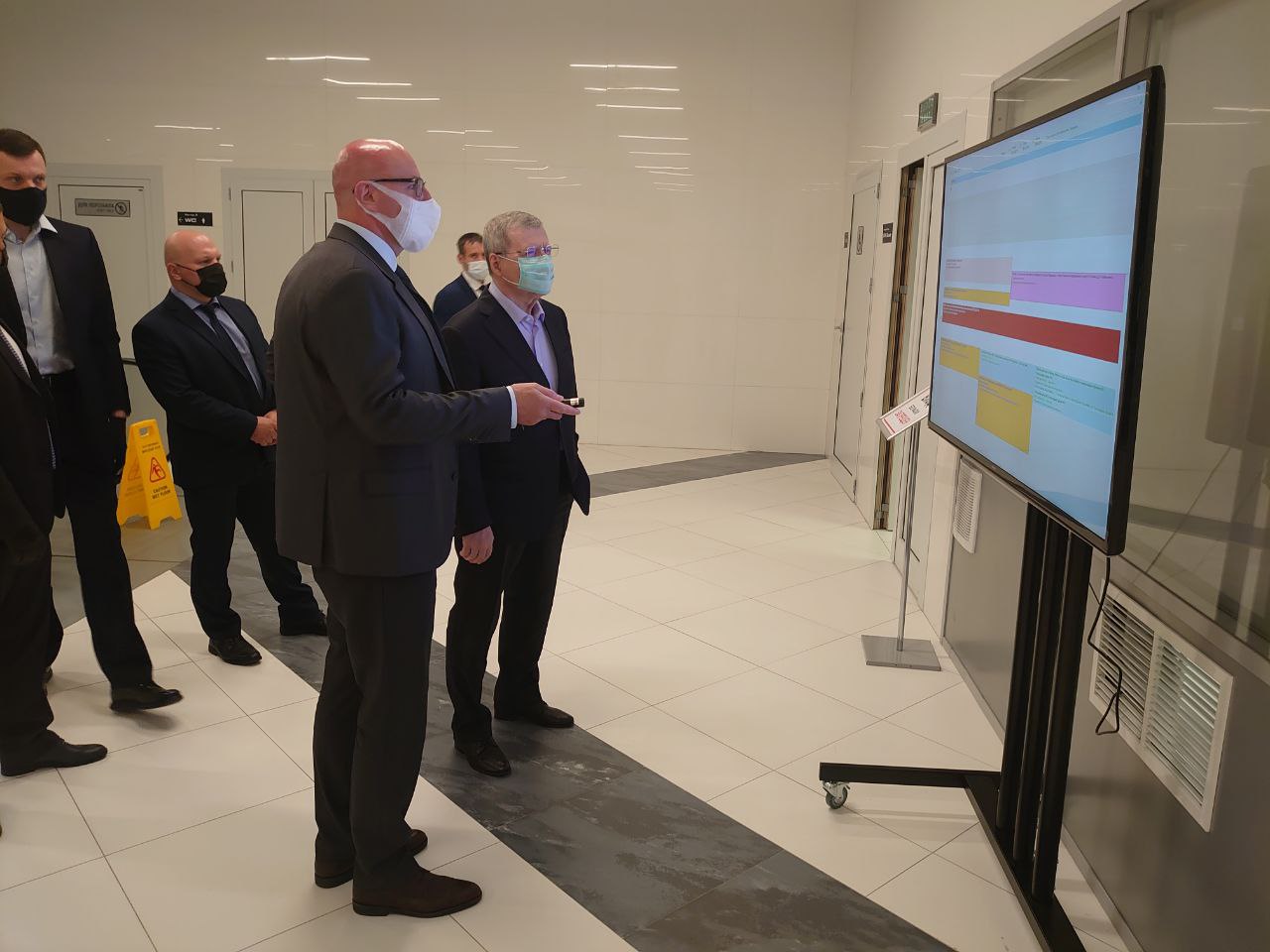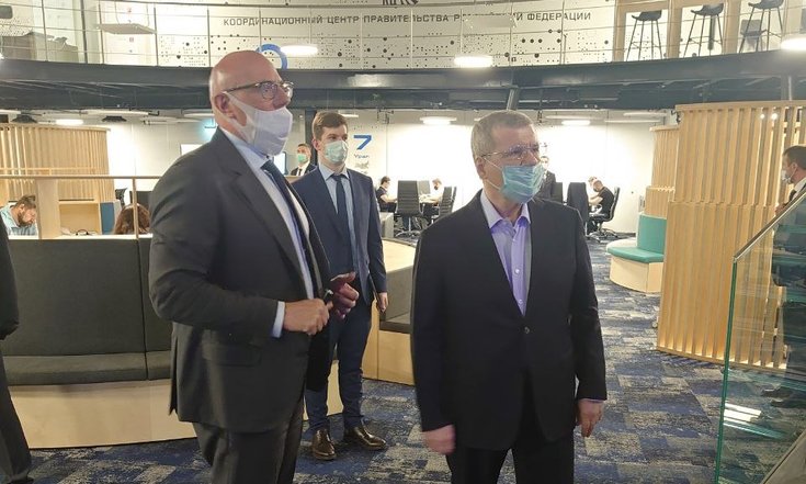 Полпред ознакомился с работой электронного портала национальных проектов и навигационной системы использования возможностей национальных проектов для граждан Российской Федерации, осмотрел зону коворкинга и ситуационный центр.
