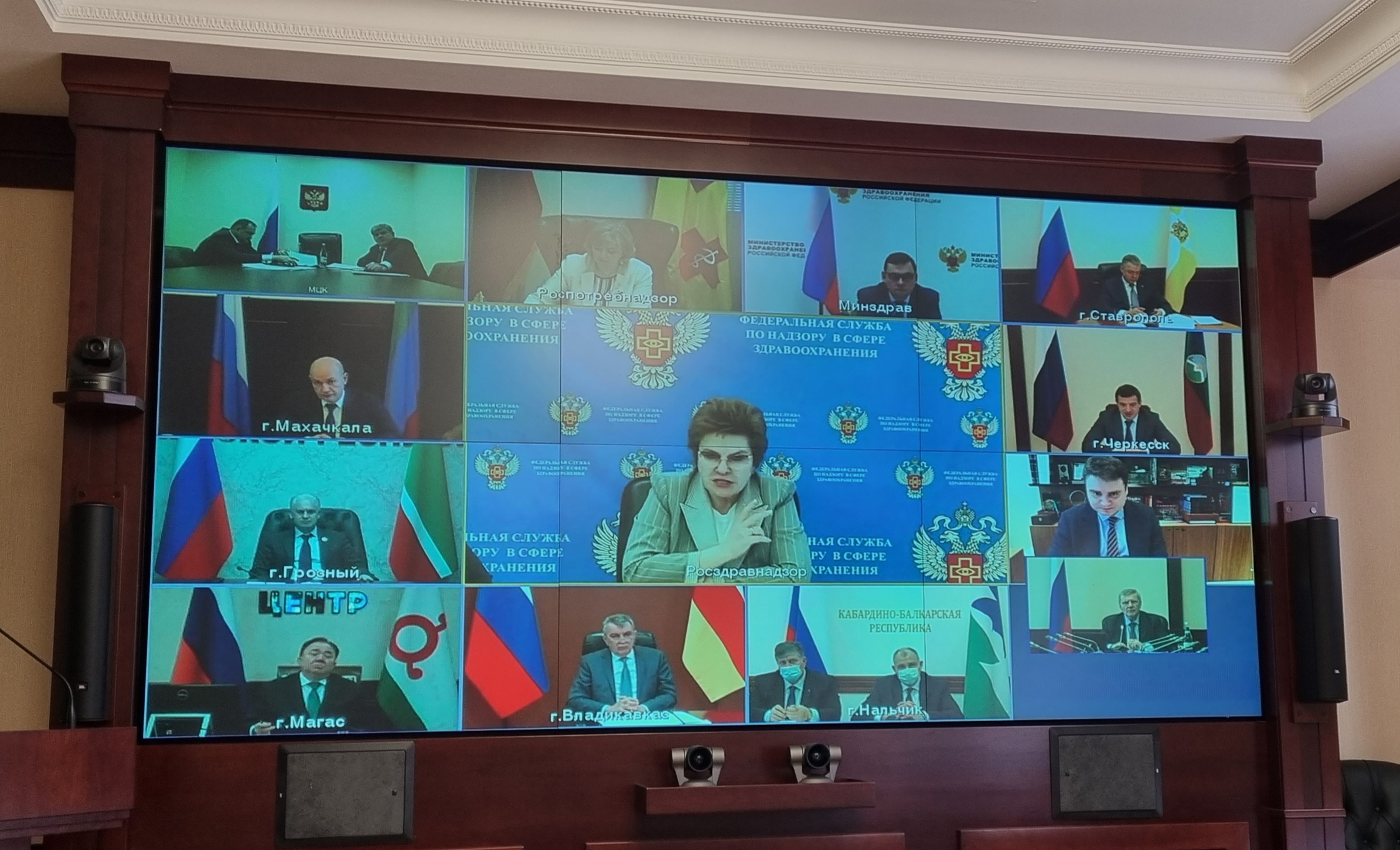 О санитарно-эпидемиологической ситуации в субъектах Северо-Кавказского федерального округа и принимаемых мерах по противодействию распространению коронавирусной инфекции, в том числе ее новых штаммов, доложили Глава Республики Дагестан Сергей Меликов, Глава Республики Ингушетия Махмуд-Али Калиматов, Глава Кабардино-Балкарской Республики Казбек Коков, председатель Правительства Карачаево-Черкесской Республики Мурат Аргунов, Глава Республики Северная Осетия-Алания Сергей Меняйло, председатель Правительства Чеченской Республики Муслим Хучиев, Губернатор Ставропольского края Владимир Владимиров.