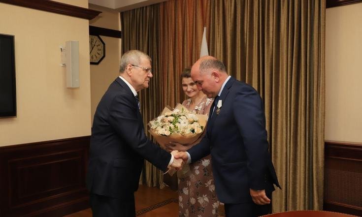 Юрий Чайка вручил награду и поблагодарил супругов за вклад в развитие региона. Он также передал семье ценные подарки.