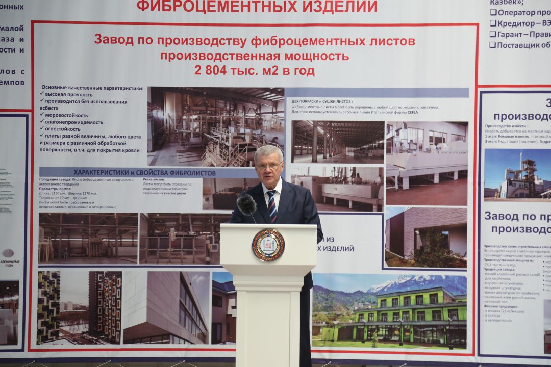 Уникальный по своим масштабам и технологическому оснащению комплекс в Шалинском районе ЧР объединил четыре завода по выпуску современных строительных материалов. Старт официальной работе двух из них - по производству фиброцементных изделий автоклавного и воздушного твердения мощностью более 2,8 миллиона квадратных метров в год, а также по производству строительной извести мощностью 32,4 тысячи тонн продукции в год – был дан сегодня.