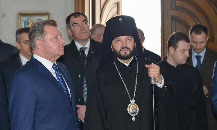 Следующим пунктом рабочей поездки стало посещение Свято-Георгиевского собора. Архиепископ Владикавказский и Аланский Леонид рассказал Олегу Белавенцеву об истории создания храма, построенного на пожертвования.